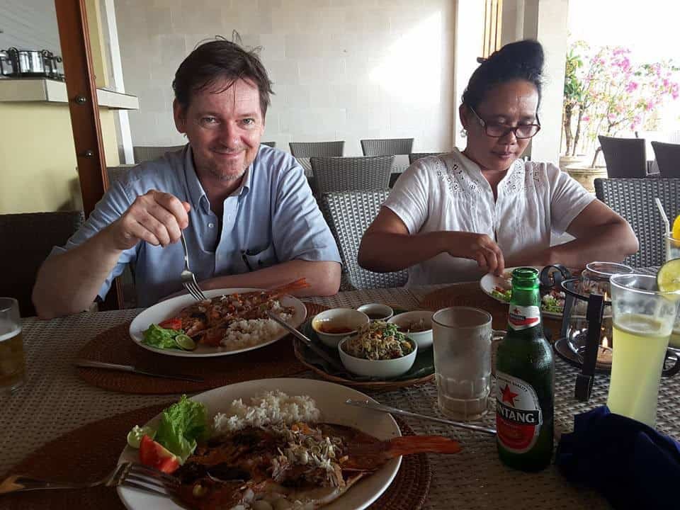 Ein Schnappschuss von meinem Arbeitsplatz, “Grossraumbuero” im ersten Stock ueber der Sparezeption. Da hab ich meine Ruhe und steige nur bei Bedarf auf einen Kaffee oder zur Kommunikation hinab. So mog i des. Naja, mehrmals taeglich muss ich auch ausruecken, Besorgungen machen, oder mal Kundschaft ins Hotel fahren wenn Not am Mann ist, mal schnell die 4 Hunde zuhaus fuettern, abends mit Indri ins Strandresto wechseln. And so on. Und ja, zum Rasieren noch keine Zeit gehabt dieser Tage. maybe tomorrow 😉