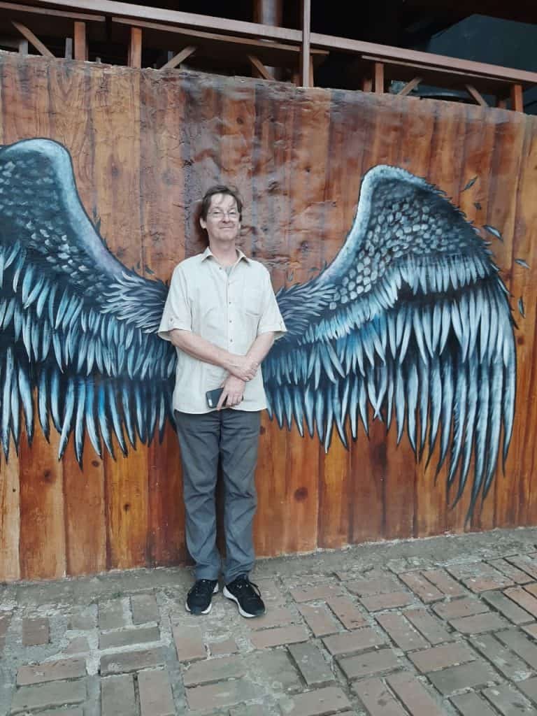 Hatte dort meinen ueblichen Input: Chickenschnitzel, extra Pommes, ein Bier, danach ein Kaffee. 4 Euro. Bewachter Parkplatz vorm Laden. Easy living in the tropics.